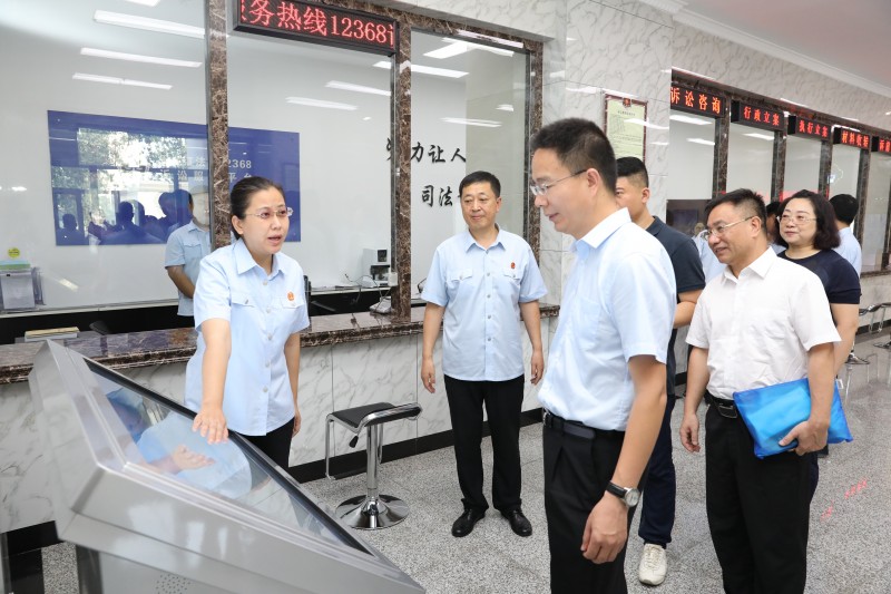 8月20日,双鸭山市中级人民法院公众开放日迎来由最高院审管办副巡视员韩伟带队,黑龙江高院、云南高院、江西高院、四川高院、贵州高院、广西桂林中院审管办工作人员组成的最高院调研组一行。党组书记、院长田守明为调研组介绍了双鸭山法院举办“公众开放日”活动的初心和内涵。