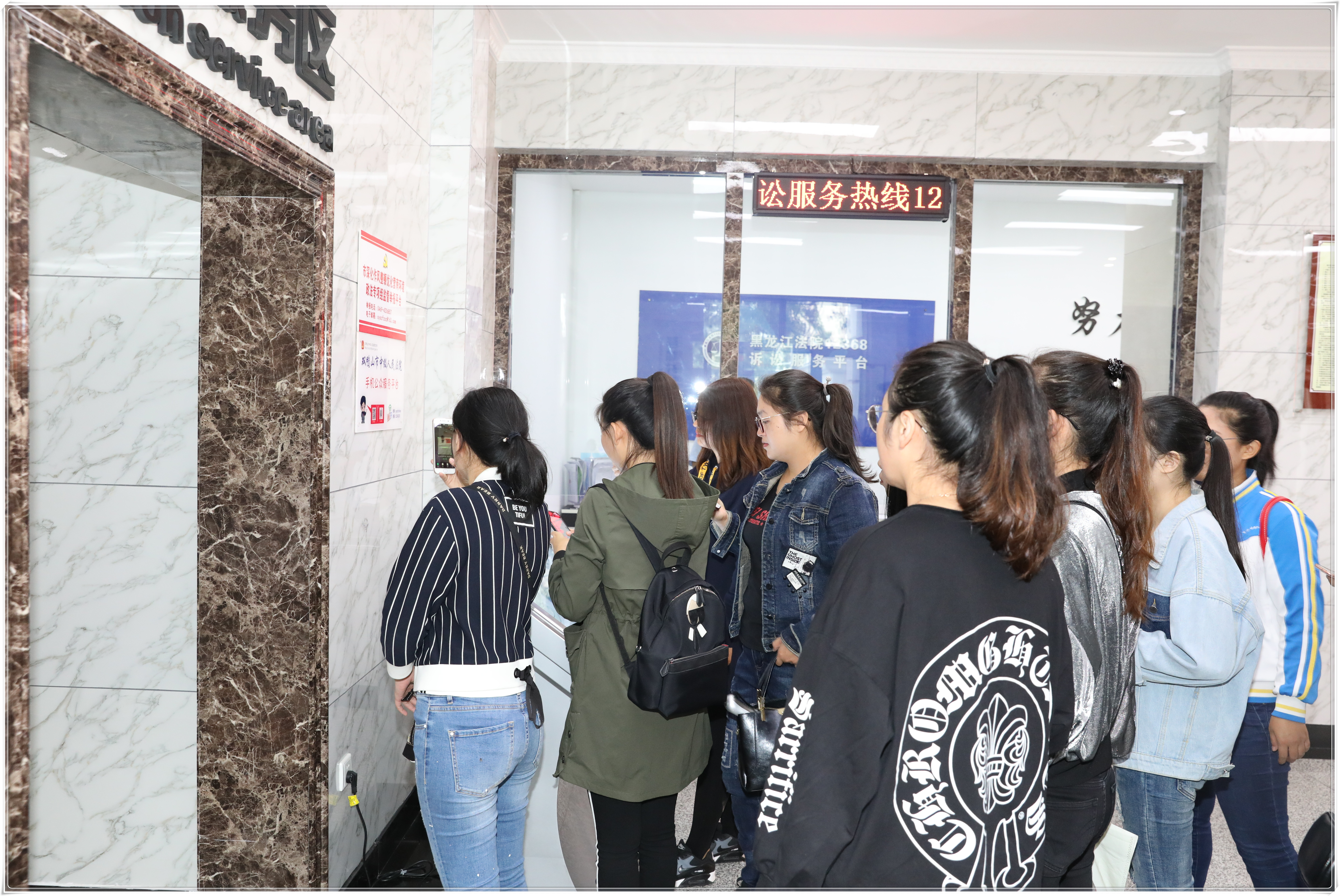在讲解员的引导下,“新同事”们参观诉讼服务中心、信访服务区、综合服务区、科技法庭、图书馆和食堂,了解了司法服务流程、审判执行工作环节、庭审的工作纪律和工作环境。