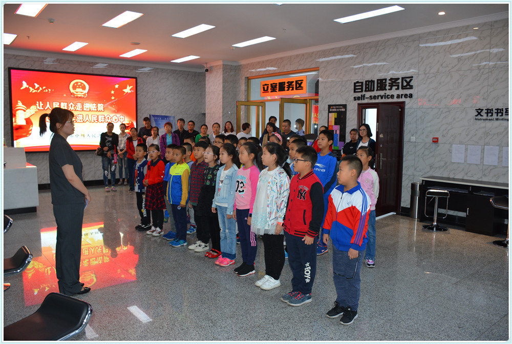 小学生们说:“通过今天参观法院,我觉得法律是非常神圣的,我们要好好学习,让法律武器成为我的保护伞,做一个阳光向上的好少年”。