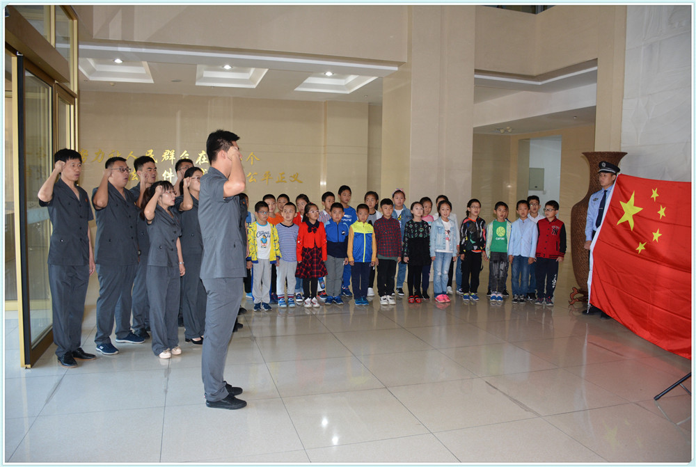 参观结束,学生们与刚进入法官队伍的“新兵们”一同面向国旗,郑重宣誓:“我是中华人民共和国法官,我宣誓:忠于祖国,忠于人民,忠于宪法和法律,忠实履行法官职责,恪守法官职业道德,遵守法官行为规范,公正司法,廉洁司法,为民司法,为维护社会公平正义而奋斗!”每句誓词深深的刻在法官们的心中,也在孩子们的心里萌生了对法治的信仰。