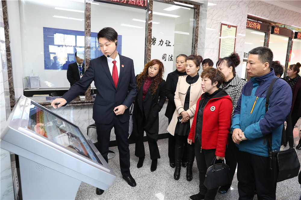 参观人员旁听了双鸭山市中级人民法院对被告人张某某等九人涉恶案件的公开宣判,在讲解员带领下参观了诉讼服务中心、执行指挥中心和图书馆等地,进一步了解法院机关服务功能及法院设施建设、文化建设等。