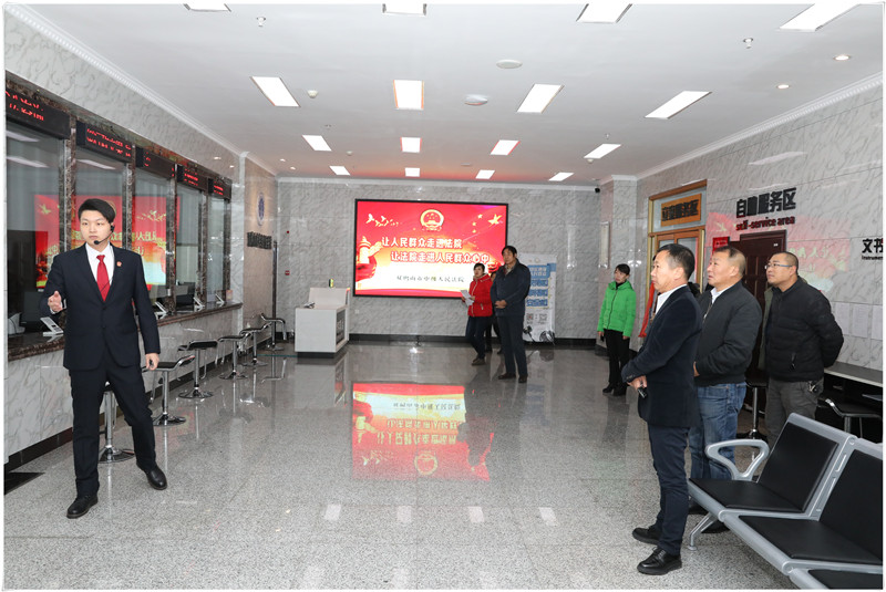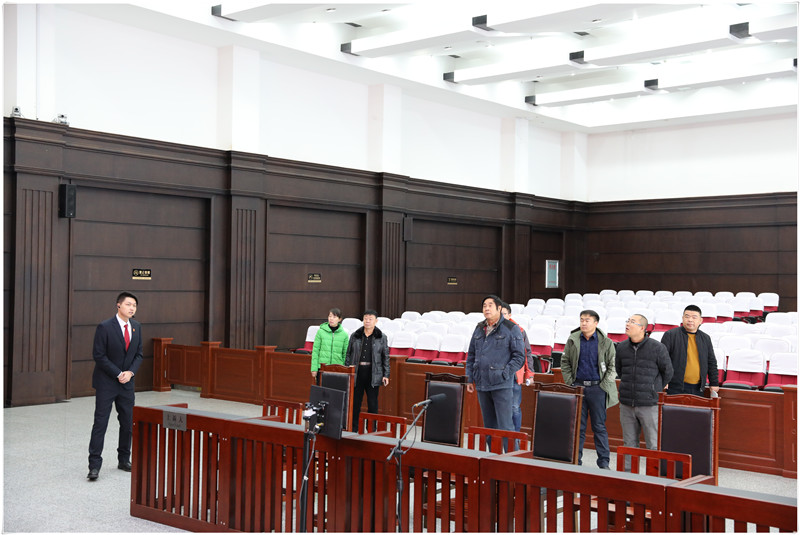 企业家代表们首先参观了诉讼服务中心,了解司法服务和设施配备等项内容,通过关注“一网两微”新媒体平台,对法院工作有了进一步了解;走进科技法庭,这里实现了庭审直播常态化,让庭审现场公开透明。