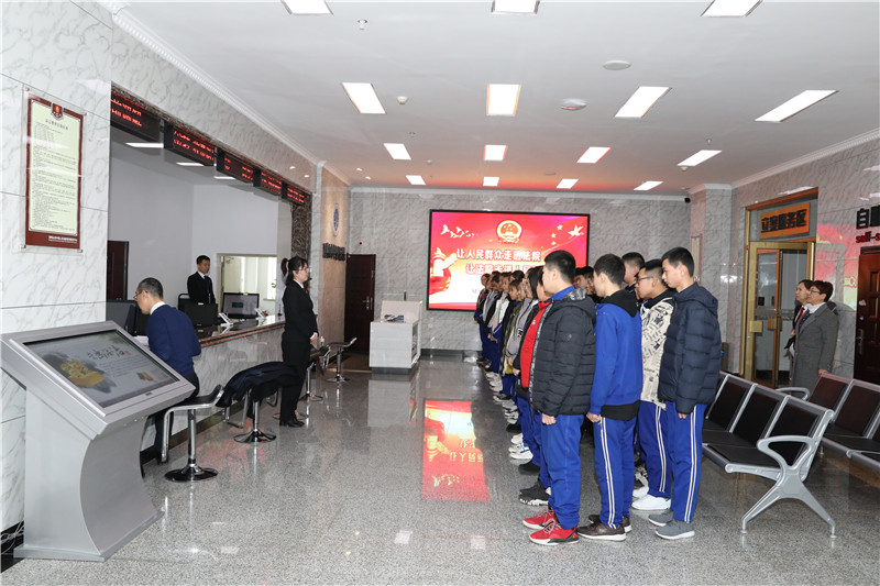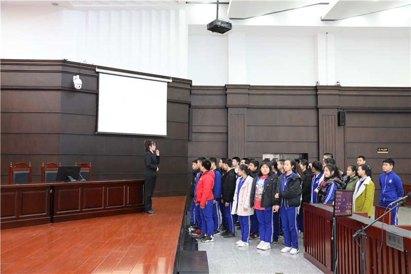 参观之前,工作人员选取了中国庭审公开网上典型案例进行播放,通过以案释法的形式,给学生们上了一堂生动且直观的法治教育课。