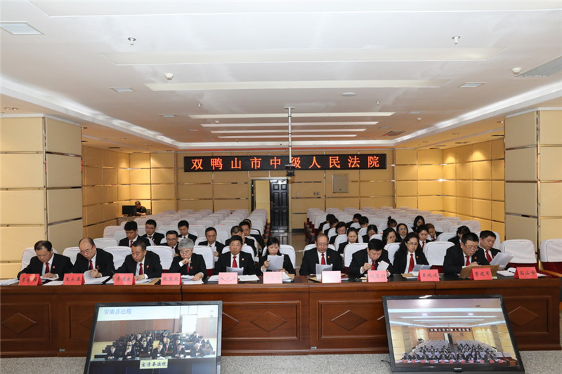 为进一步提升审判质效,深入推进“打官司不求人”工作,4月19日,双鸭山中院召开全市法院落实“打官司不求人”提升审判质效工作推进会。通报全市法院2019年第一季度审判质效和电子卷宗随案同步生成及深度应用情况,分析研判形势,推进重点工作落实。党组书记、院长田守明出席会议并讲话。会议以视频形式召开,两级法院党组成员、全体员额法官分别在主会场和分会场参加会议。