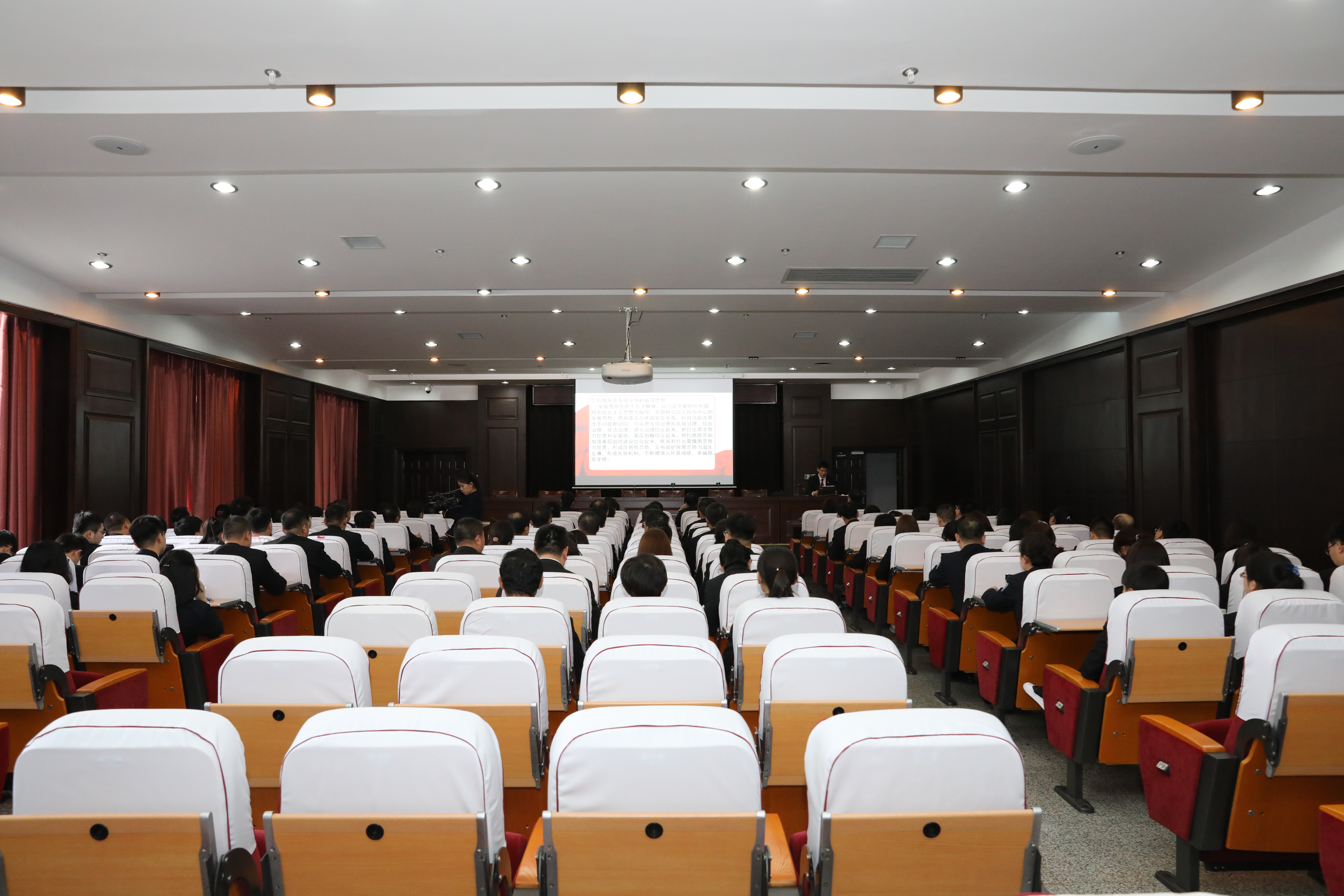 孙俐兴结合法院工作实际,通过以案说法,对中央开展扫黑除恶专项斗争的时代背景、黑恶势力出现的原因、扫黑除恶专项斗争中面临着的突出问题进行详细讲解。