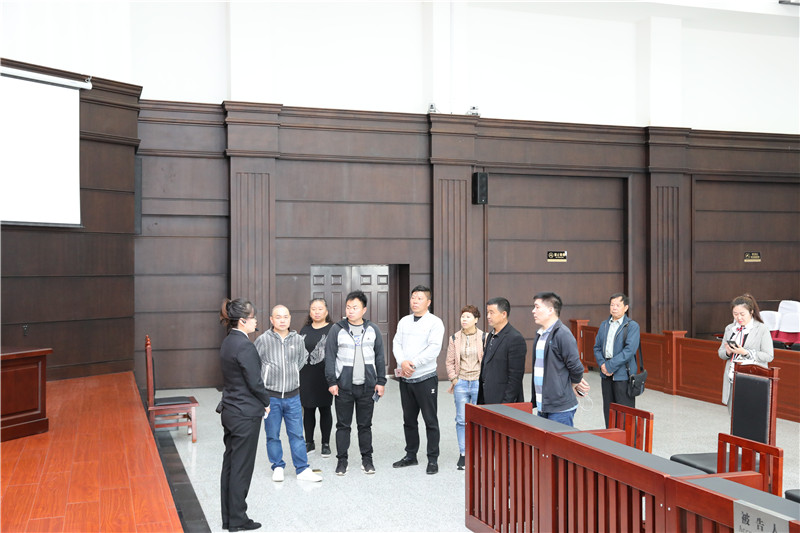 在审判法庭,工作人员向党员们认真讲解了案件庭审流程和相关法律常识,并邀请参观人员走上审判席,亲身感受法官的庄严与神圣,法庭的威严与肃穆。