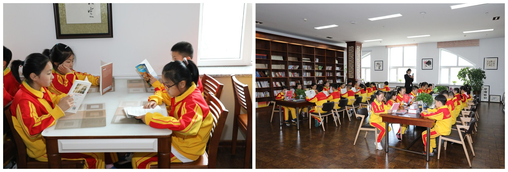 走进图书馆,孩子们了解了在图书馆需要遵守的规章制度,参观了“我心中的天平”干警书画作品展。