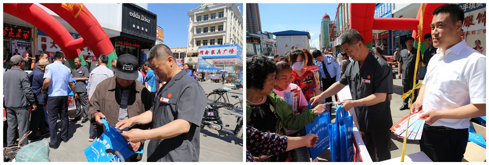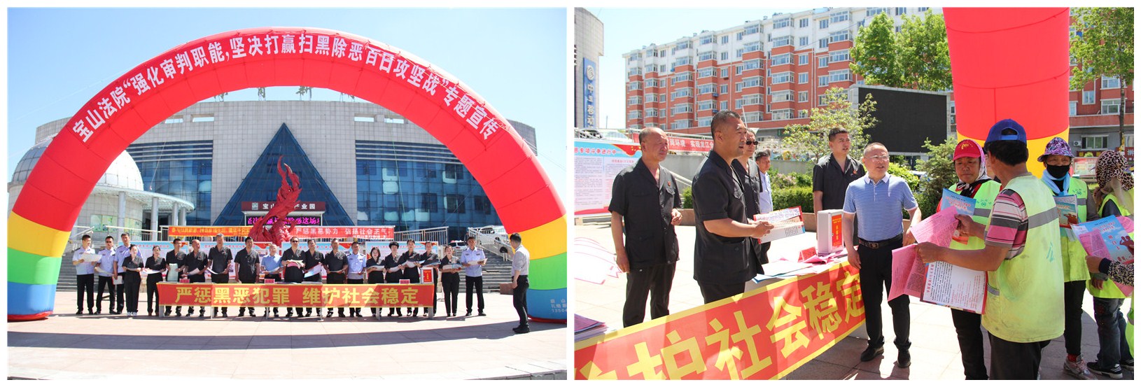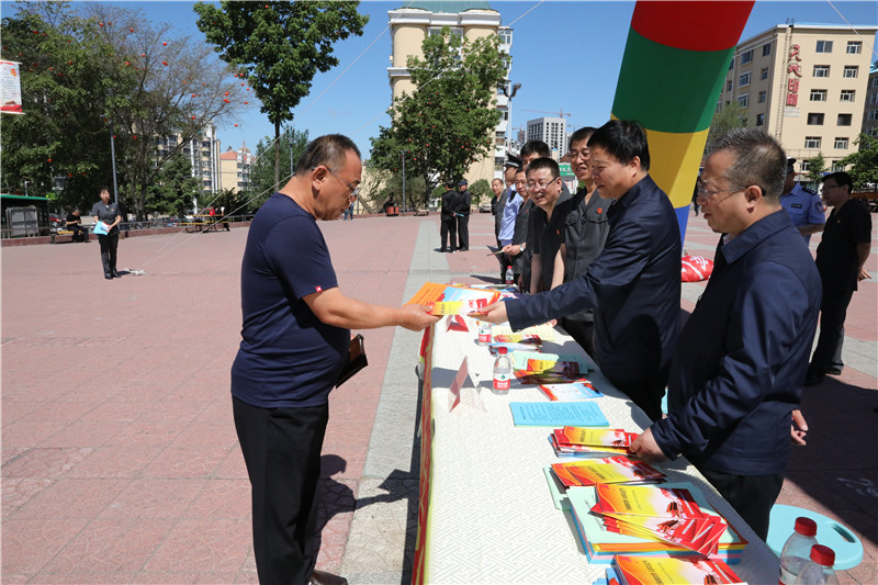 6月4日,双鸭山市两级法院开展 以“强化审判职能重拳出击 精准发力 坚决打赢扫黑除恶‘百日攻坚战’”为主题的集中宣传活动,中院党组书记、院长田守明、政法委副书记洪辰参加宣传活动。