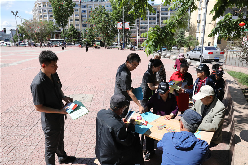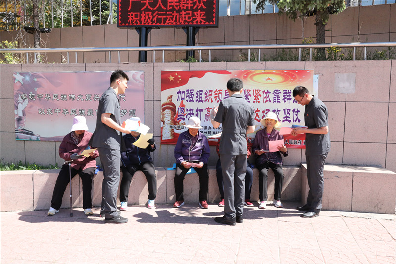 党组书记、院长田守明为过往群众发放扫黑除恶专项斗争宣传资料