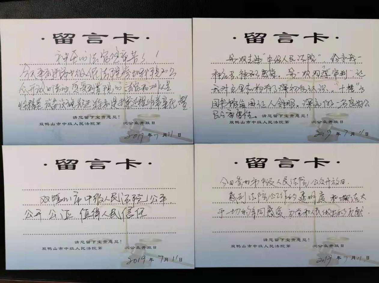 参观人员纷纷表示,通过走进法院开放日大家对法院智能设备的运用、服务质量的提升以及工作流程有了新的认识,处处体现了兑现承诺的实际行动,希望能有更多的人走进法院、了解法院,树立信法不求人的理念,使“让老百姓打官司不求人”深入人心。