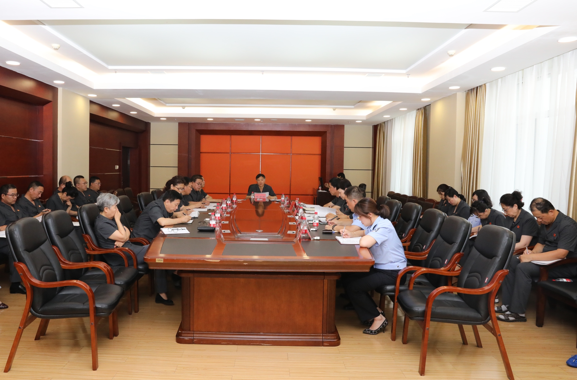 为推进省法院党组书记、院长石时态“不忘初心、牢记使命”主题教育专题党课精神落实落地,8月8日下午,双鸭山中院党组牢牢把握“守初心、担使命,找差距、抓落实”总要求,组织召开理论学习中心组集体学习(扩大)会,专题学习研讨省法院党组书记、院长石时态“不忘初心、牢记使命”主题教育专题党课报告。党组书记、院长田守明主持会议,中院副处级以上领导干部和各部门负责同志列席会议。