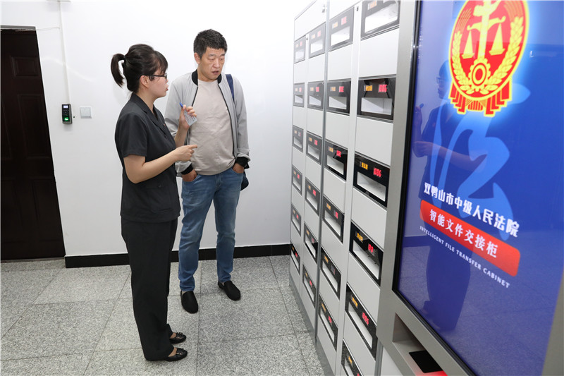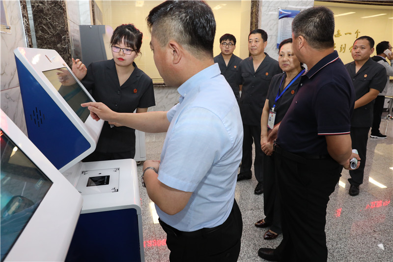 佳木斯中院一行先后实地参观了诉讼服务中心、云柜、智慧审判法庭、信息中心等场所,通过现场工作人民演示讲解,对诉讼服务流程、案件材料的扫描、材料流转、电子卷宗随案同步生成过程进行了详细地了解。并现场体验了多功能诉讼服务一体机、诉讼风险评估一体机、智能诉状生成一体机三个自助终端、文书智能编写、智慧法庭庭审、云柜材料流转等信息化应用的演示,详细了解了双鸭山法院信息化建设工作的具体做法和经验措施。