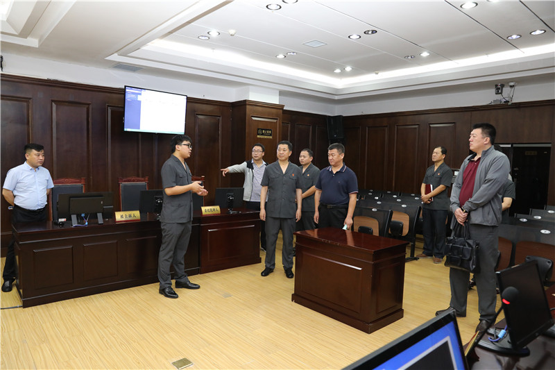 8月16日,佳木斯中院一行6人到双鸭山中院参观交流信息化建设工作。双鸭山中院党组副书记、副院长李青春陪同参观。