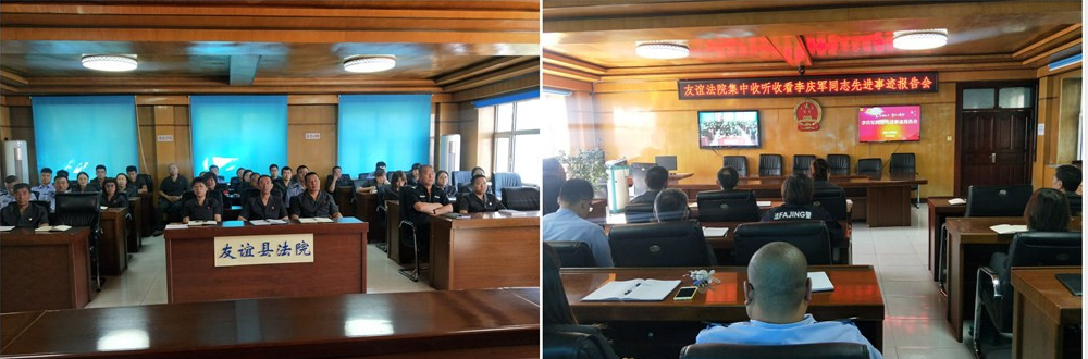 9月3日,双鸭山市两级法院集中收听收看李庆军同志先进事迹报告会。