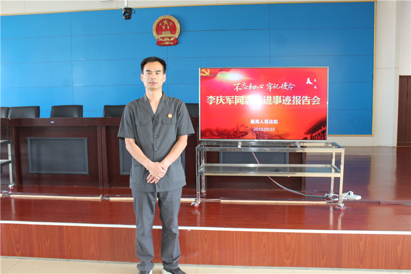 李庆军同志生前系河南省高级人民法院立案第二庭副庭长,2018年9月28日因病医治无效逝世。他身患重病仍坚守岗位,清正廉洁,忠诚履职,事迹在社会上产生强烈反响。李庆军同志先进事迹报告团成员用质朴的语言、生动的事例,追忆李庆军同志感人事迹,在场干警深受教育和感动。