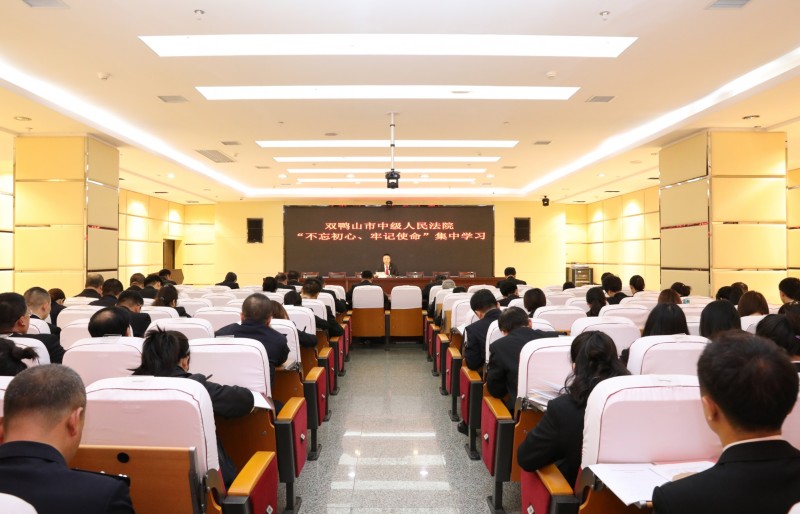 10月11日,双鸭山中院开展“不忘初心、牢记使命”主题教育集中学习暨领导班子、领导干部第九次集中学习,重点学习了习近平总书记在庆祝中华人民共和国成立70周年大会上的重要讲话精神、学习全国模范法官李庆军同志先进事迹暨最高人民法院周强院长在追授李庆军荣誉称号大会上的讲话精神和《中国共产党宣传工作条例》,观看了“不忘初心、牢记使命”主题教育视频教材《丰碑》。政治部副主任、机关党委专职副书记贾立仁主持学习,全体干警参加学习。