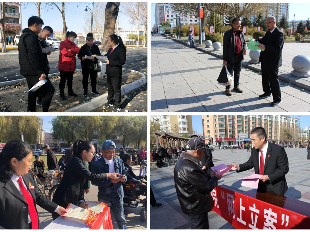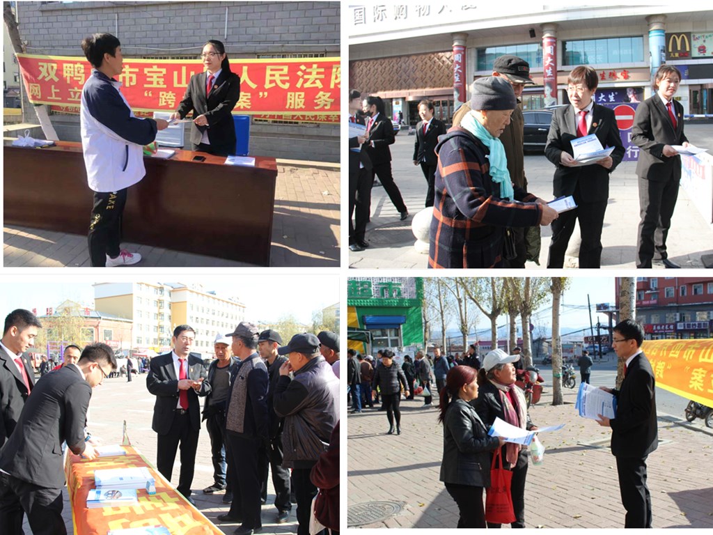 10月14日,全国法院跨域立案工作启动,双鸭山市全力推进诉讼服务信息化建设,为扩大宣传面,提高知晓度,10月23日上午,双鸭山市两级法院集中开展“网上立案、跨域立案”法律服务宣传活动,让广大人民群众了解“打官司不求人”的最新成果,坚持以服务人民为中心,切实提升群众满意度,为深入推进人民司法信息化建设营造良好氛围。