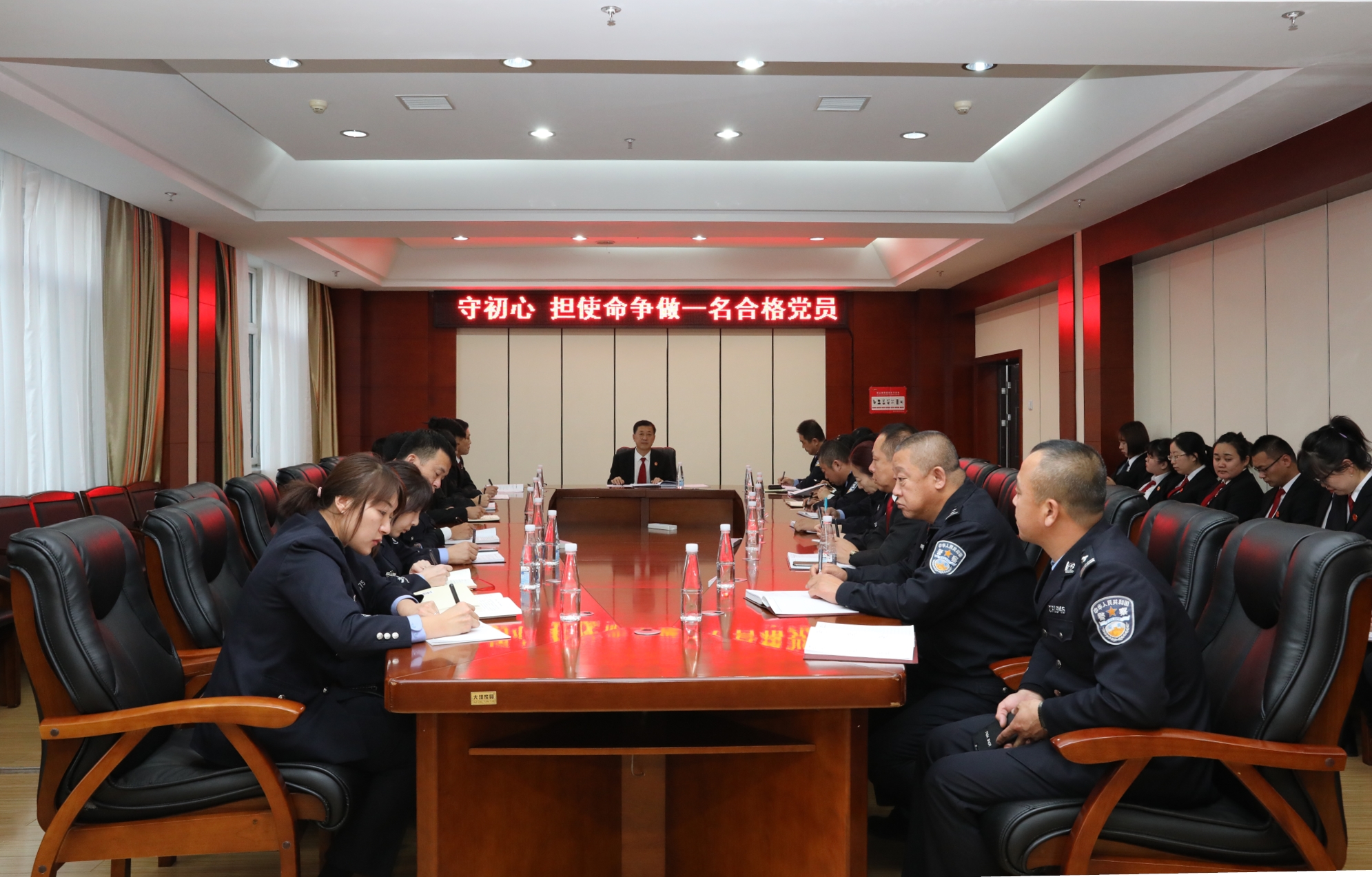 李青春与干警们共同回顾了建党98周年来的伟大成就,阐述了开展“不忘初心、牢记使命”主题教育的重大意义,围绕“信念过硬、政治过硬、责任过硬、能力过硬、作风过硬”对新时代党员干部标准进行解读,并就进一步推进工作落实作出部署。
