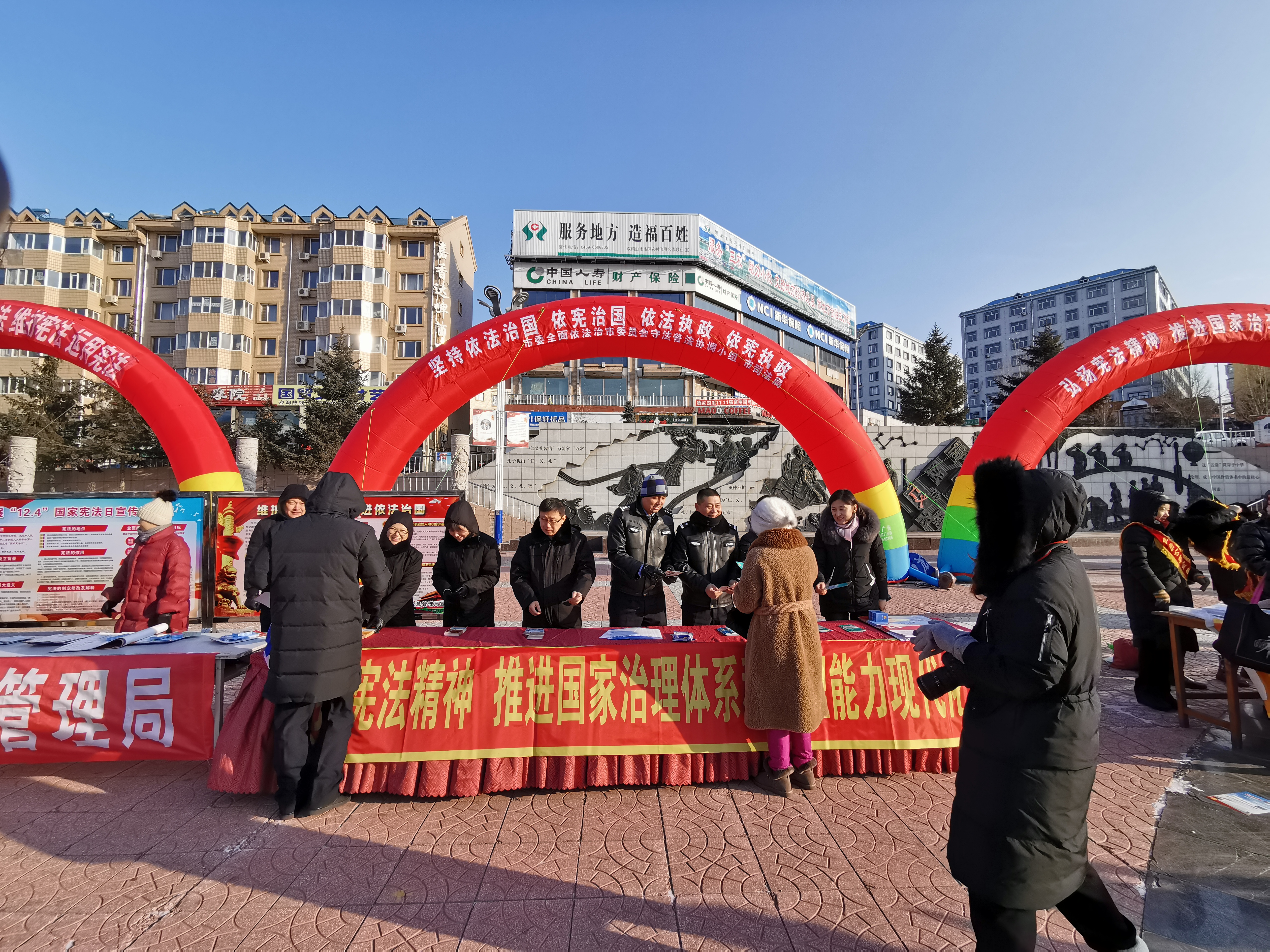 12月4日,双鸭山中院法官及工作人员走上街头,开展“国家宪法日”宣传活动。活动设立法律服务站,以发放资料、现场咨询的形式提供法律服务,为群众进行答疑解惑、提供法律咨询200余人次,发放折页等宣传材料800余份,强化推进落实“谁执法谁普法”责任制,充分发挥法治文化阵地作用。