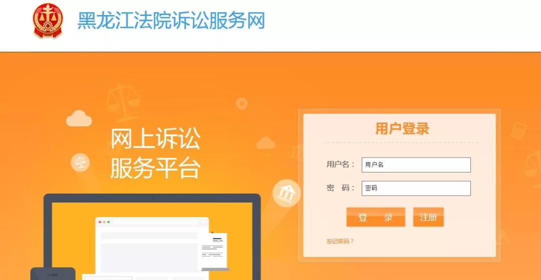 1.电脑中输入www.hljcourt.gov.cn/ssfw/,进入黑龙江法院诉讼服务平台。