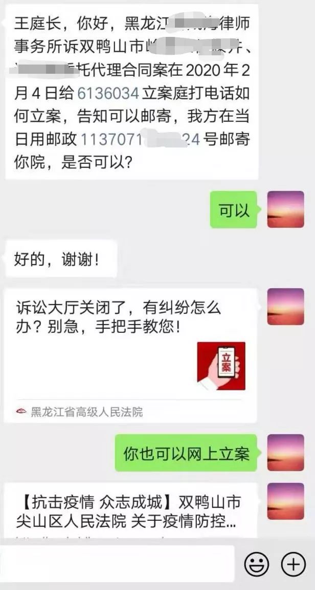 面对严峻的疫情防控形势,双鸭山两级法院结合工作实际,进一步提升政治站位,坚持服务大局,加强便民利民举措,利用网络、电话等方式为当事人提供网上立案、邮寄立案、电话咨询,接收立案材料等服务,及时处理相关事宜,当事人即使在交通管制出行不便的情况下也能享受到专业的诉讼服务。切实维护当事人的合法权益,确保诉讼服务工作疫情期间“不打烊”。