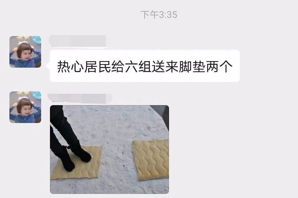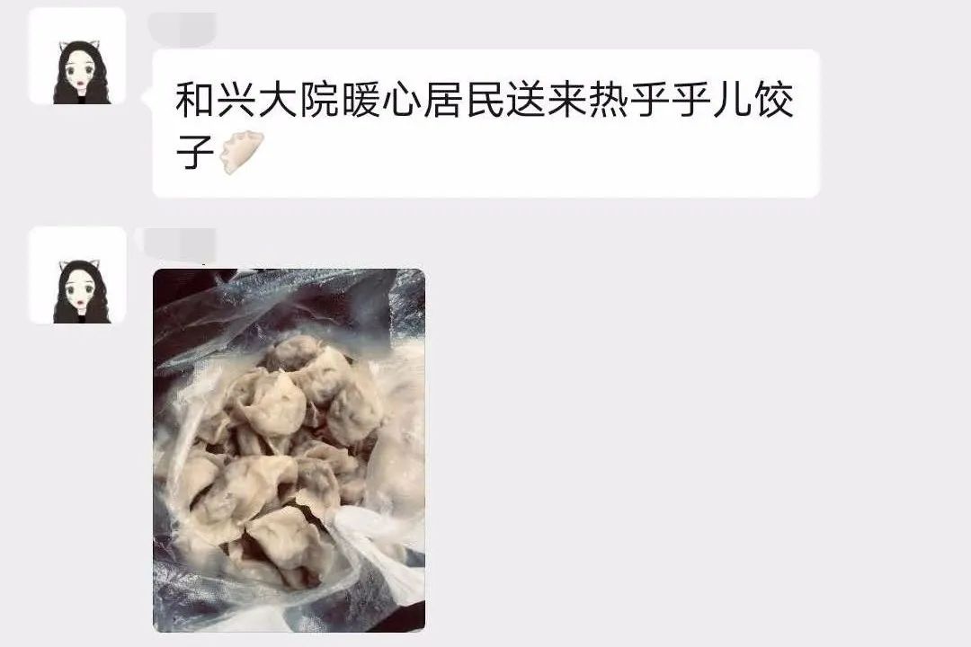 在市中院干警负责的11小区执勤卡点,处处都发生着感人的故事。双房物业工作人员送来的热茶,新宇2、3号楼、土地局住宅楼爱心人士煮的鸡蛋,和兴大院热心居民郭凤霞女士包的饺子……还有热心群众送的厚鞋垫,让干警们垫在脚下,暖在心田。