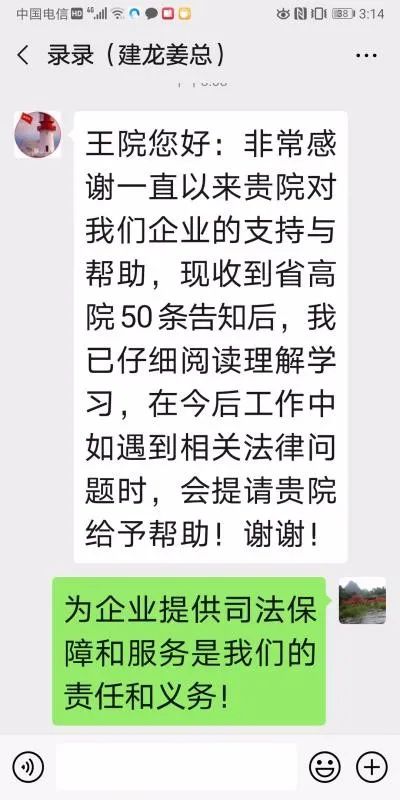 建龙钢铁集团感谢两级法院一直以来的支持和帮助,省法院制发的50条告知为企业防范化解法律风险提供了助力。