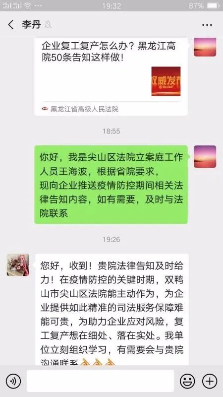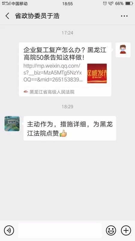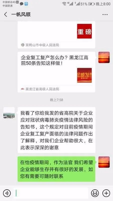 龙江银行表示省法院《告知书》及时给力!在疫情防控期间人民法院主动作为,为企业提供如此精准的司法服务难能可贵,为企业复工复产想在细处、落在实处。