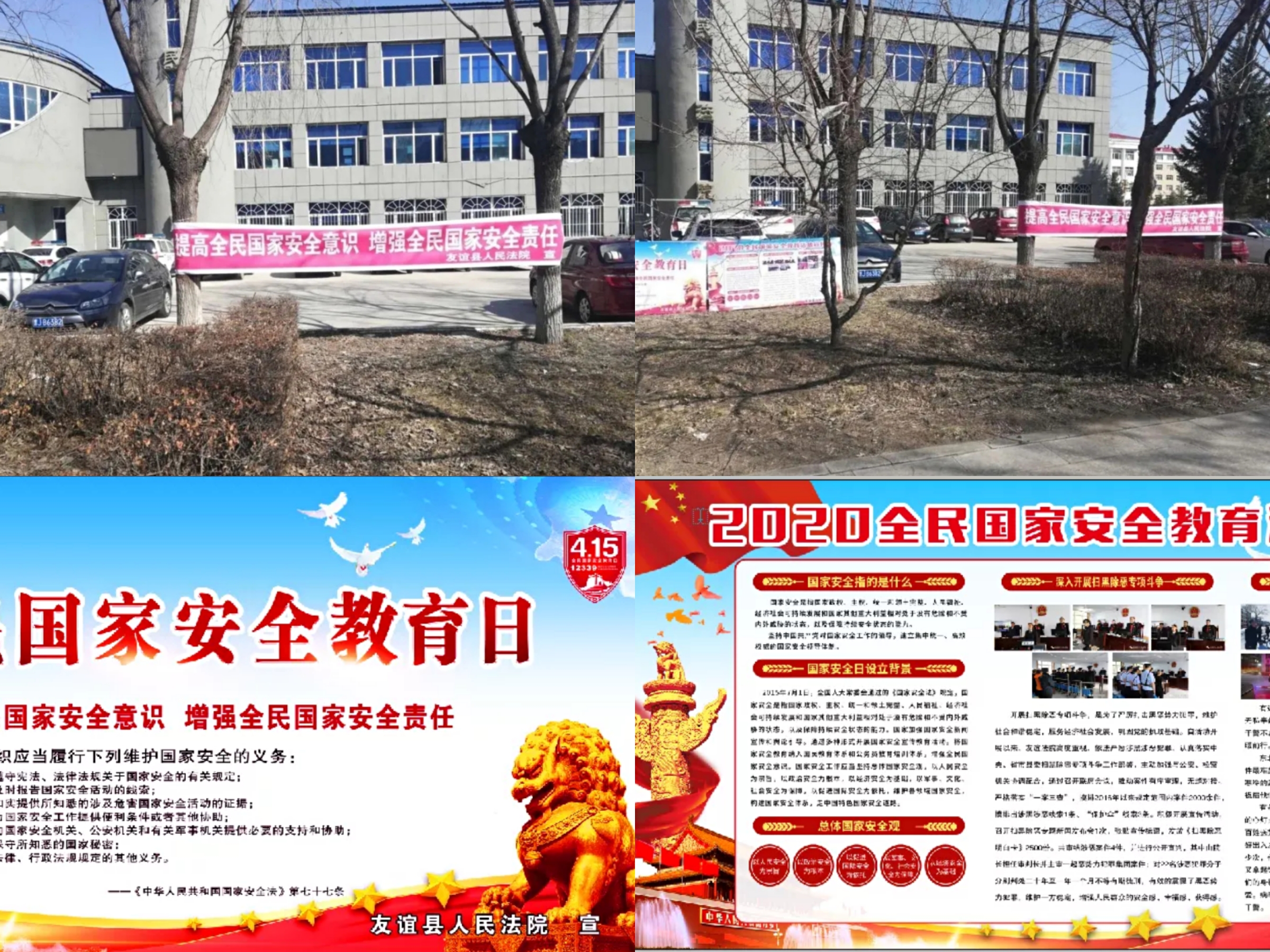 为提高全民国家安全法治意识,营造维护国家安全的浓厚法治氛围,增强防范和抵御安全风险能力,在第五个全民国家安全教育日来临之际,双鸭山两级法院结合“坚持总体国家安全观,统筹传统安全和非传统安全,为决胜全面建成小康社会提供坚强保障”的主题,开展了丰富多样的宣传活动。