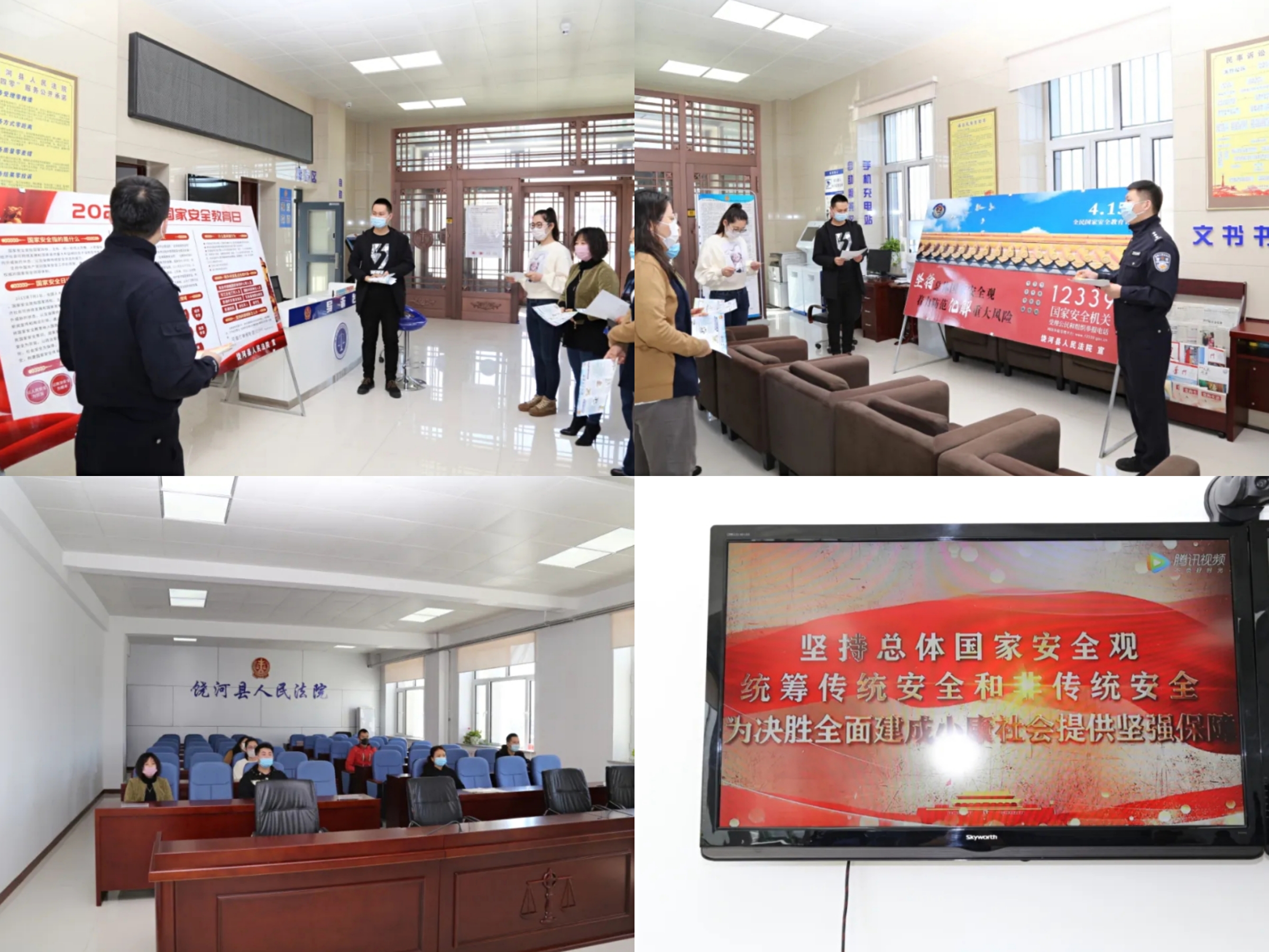 饶河县法院统筹“防控疫情、法治同行”与“坚持总体国家安全观,统筹传统安全和非传统安全,为决胜全面建成小康社会提供坚强保障”开展专项法治宣传活动,制作展板2块,电子屏幕播放2块,发放传单30余份;组织干警观看国家安全教育日相关专题片,强化了公众维护国家安全的法律意识和法治观念,对进一步维护社会稳定起到了积极的促进作用。