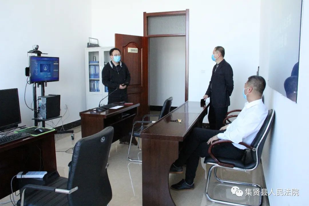 4月26日上午,集贤县人民法院党组书记、院长于夫鑫与主管行政副院长王建南、主管民商事副院长李德福前往非接触审判法庭查看法庭改造和设备调试情况。为广泛应用非接触审判模式,集贤法院研究决定非接触审判模式再升级,为没有设备、不会应用非接触审判模式的当事人提供设备,并在工作人员的指导下完成庭审。