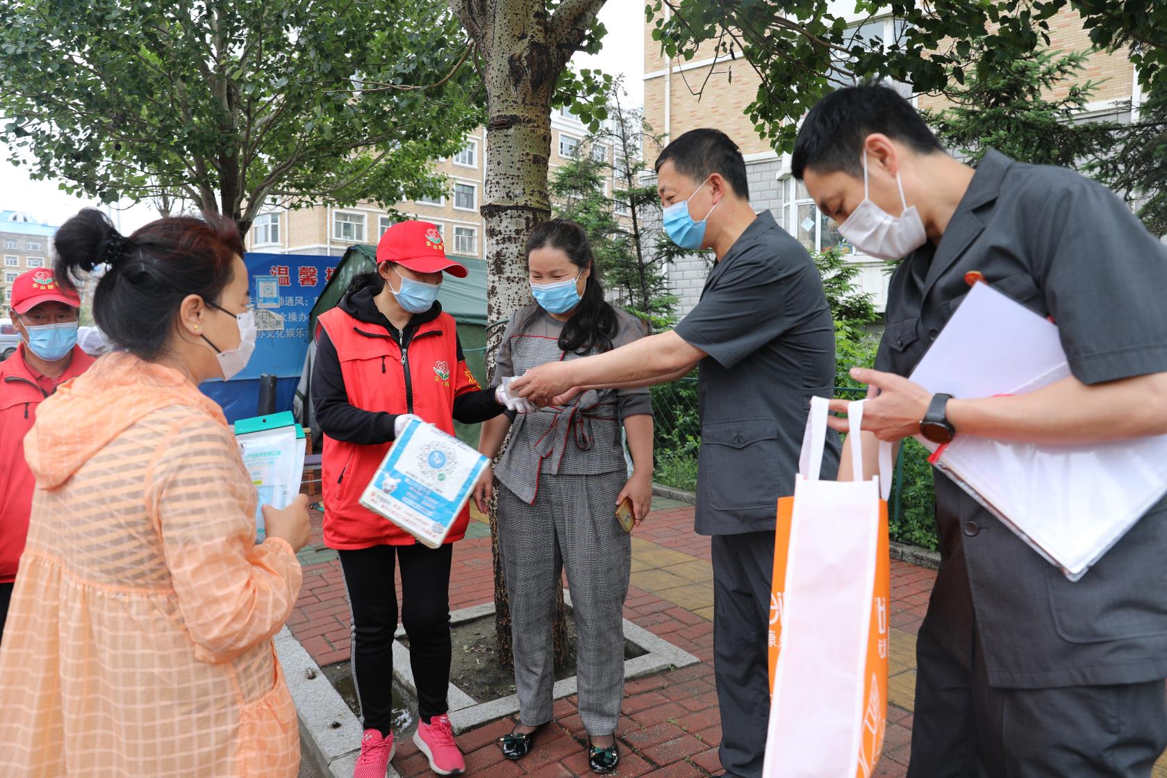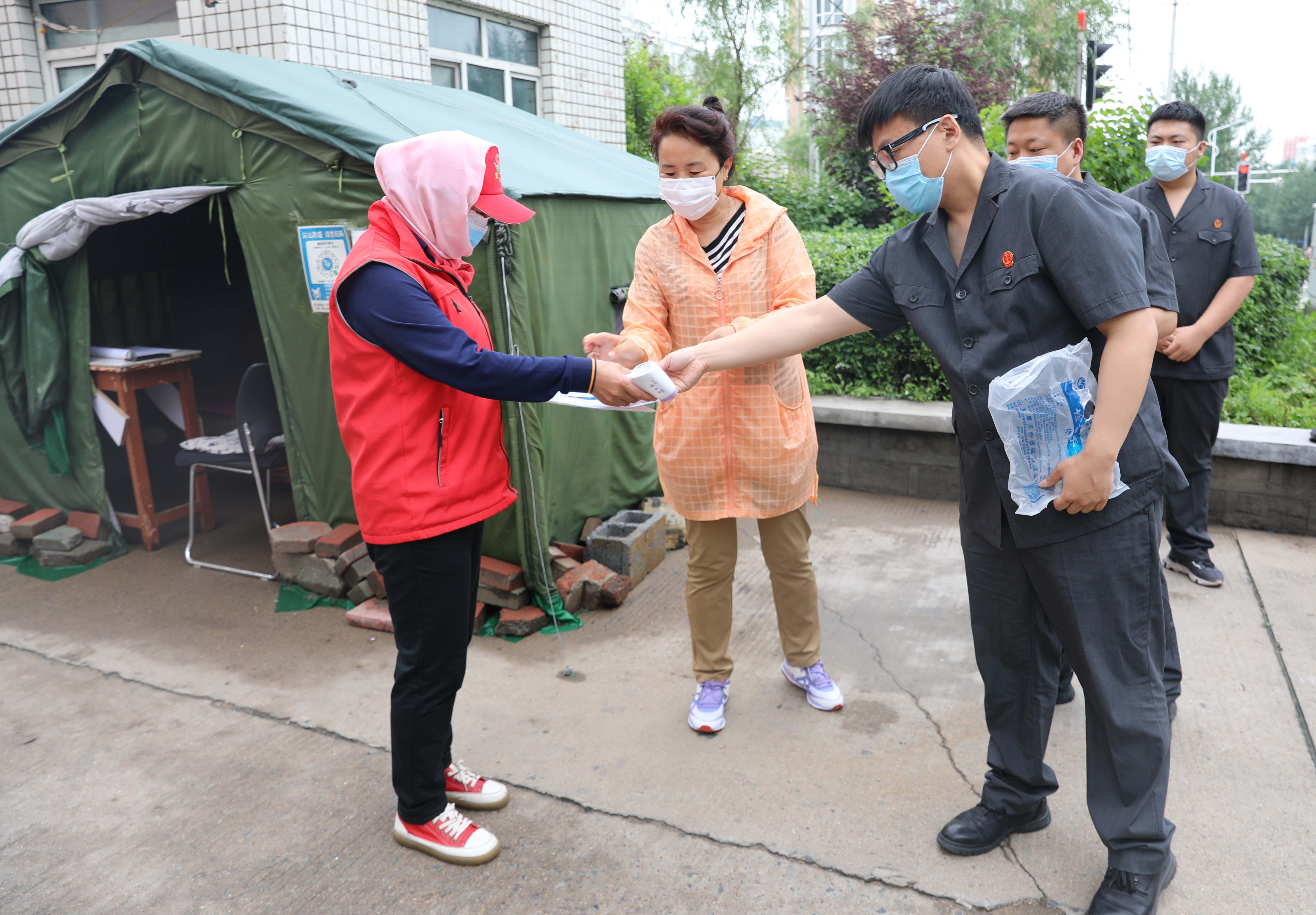 6月24日,双鸭山中院第三党支部十余名党员干警,下沉银苑社区开展“下沉社区志愿服务 让党旗在疫情防控一线高高飘扬”主题党日活动。