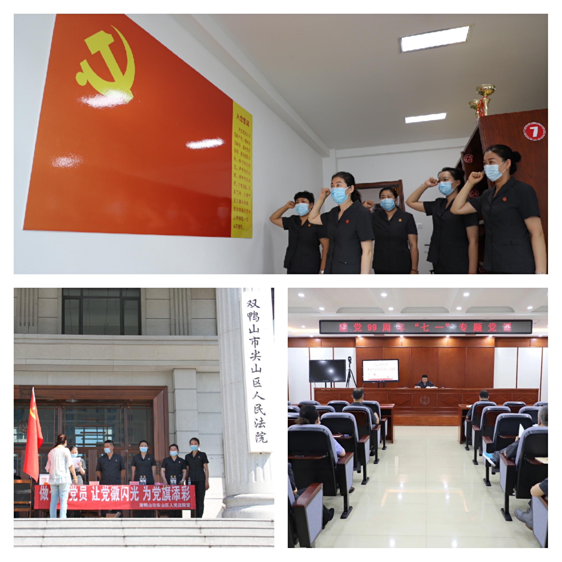 尖山区法院开展重温入党誓词、普法宣传和“隽永诗歌 红心向党”诗歌朗诵活动,党组书记、院长杨丘波以“抗疫精神充分彰显中国特色社会主义制度优越性”为题,围绕忠诚履职、担当坚守等方面,为全院党员进行“七·一”专题党课辅导。