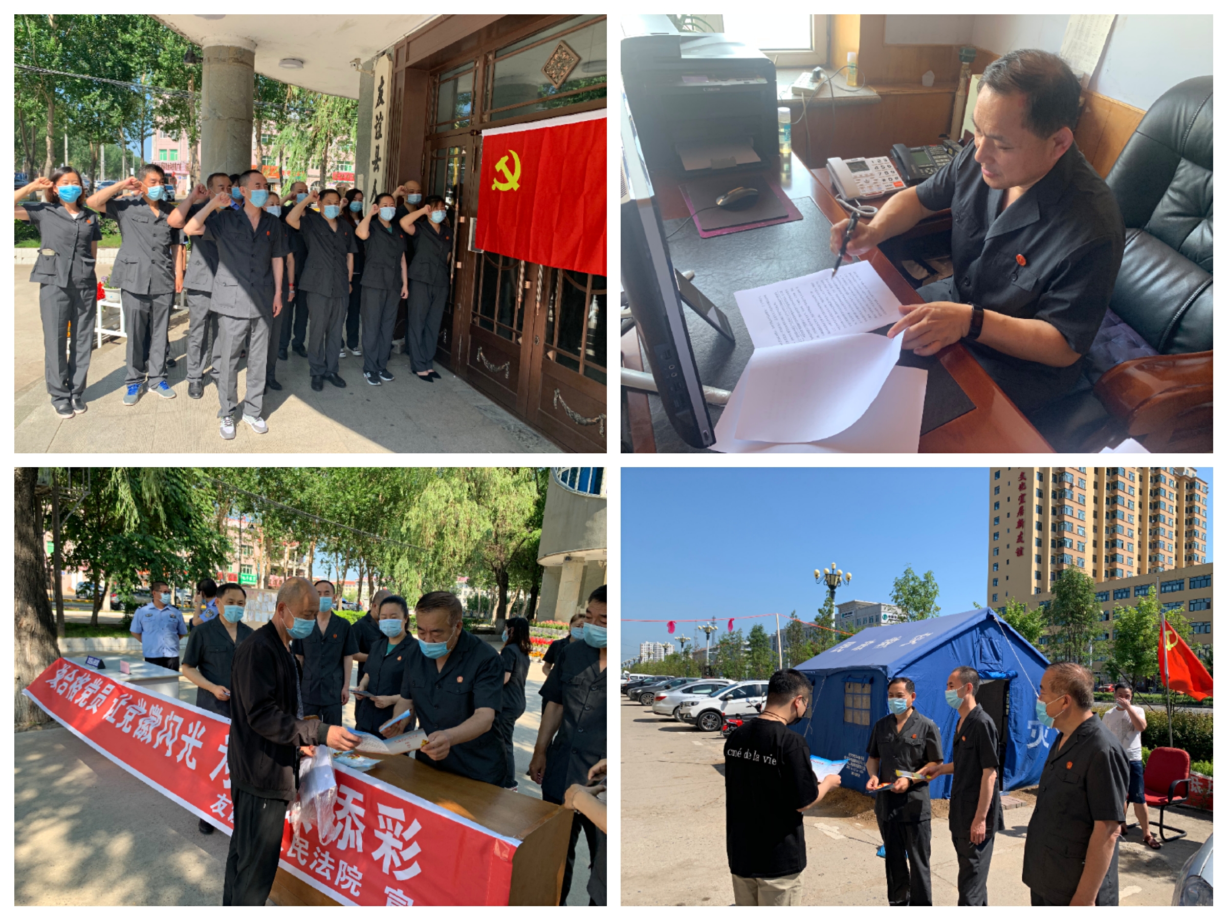 双鸭山中院各党支部分别开展主题党日活动,深入开展《民法典》的宣传和普及工作,进一步增强党员干部密切联系群众能力,党员干警走进尖山区安邦乡双胜村开展普法宣传,促进村两委干部及工作人员的法治观念和法律素质的提升,进一步增强农村法治化管理水平及调解化解纠纷的工作能力;开展扫黑除恶专项斗争和打击拒执行为犯罪宣传活动;