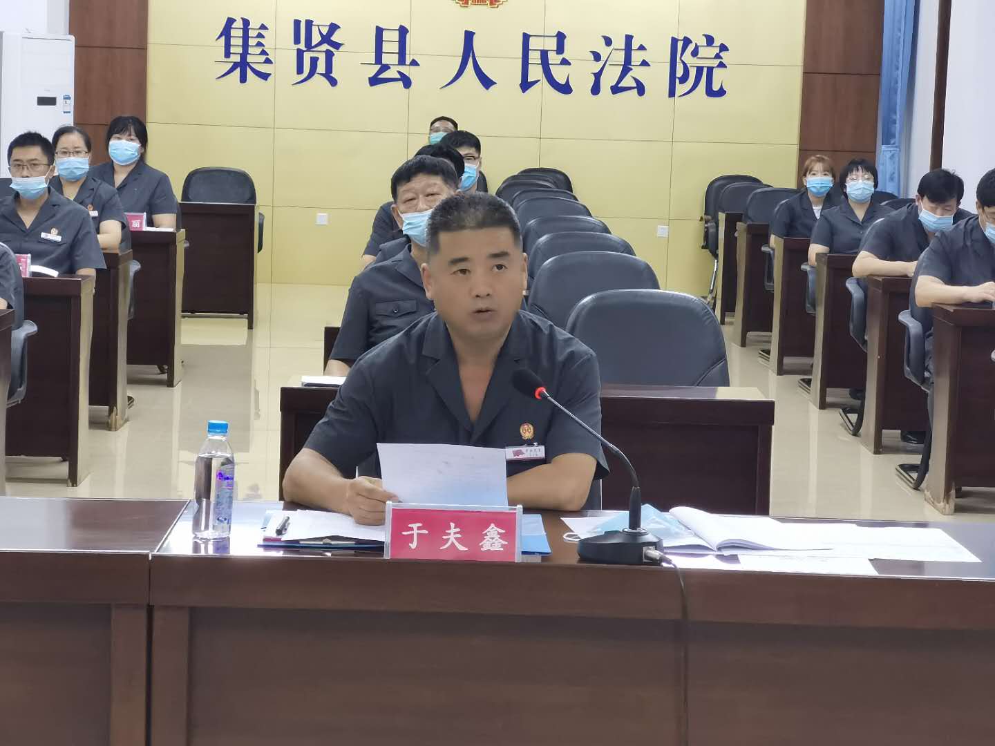会议指出,坚持使命担当,凝聚合力抓好执法办案工作。要强化责任担当,在已取得成绩的基础上,进一步总结集贤法院工作经验,凝聚共识,向先进看齐,向榜样学习,营造讲正气、讲勤政、讲业绩的浓厚氛围。要抓好统筹推进,将抓好执法办案与开展“万名法官走访万家企业”等活动结合起来,用实际行动践行政治意识、大局意识、核心意识和看齐意识,全身心服务我市经济高质量发展。要发挥领导带头作用,统筹推进一体化管理,充分发挥党组成员包保基层法院、院庭长条线督导管理的职能,有计划、有责任、有措施、有效果的推进落实各项工作。