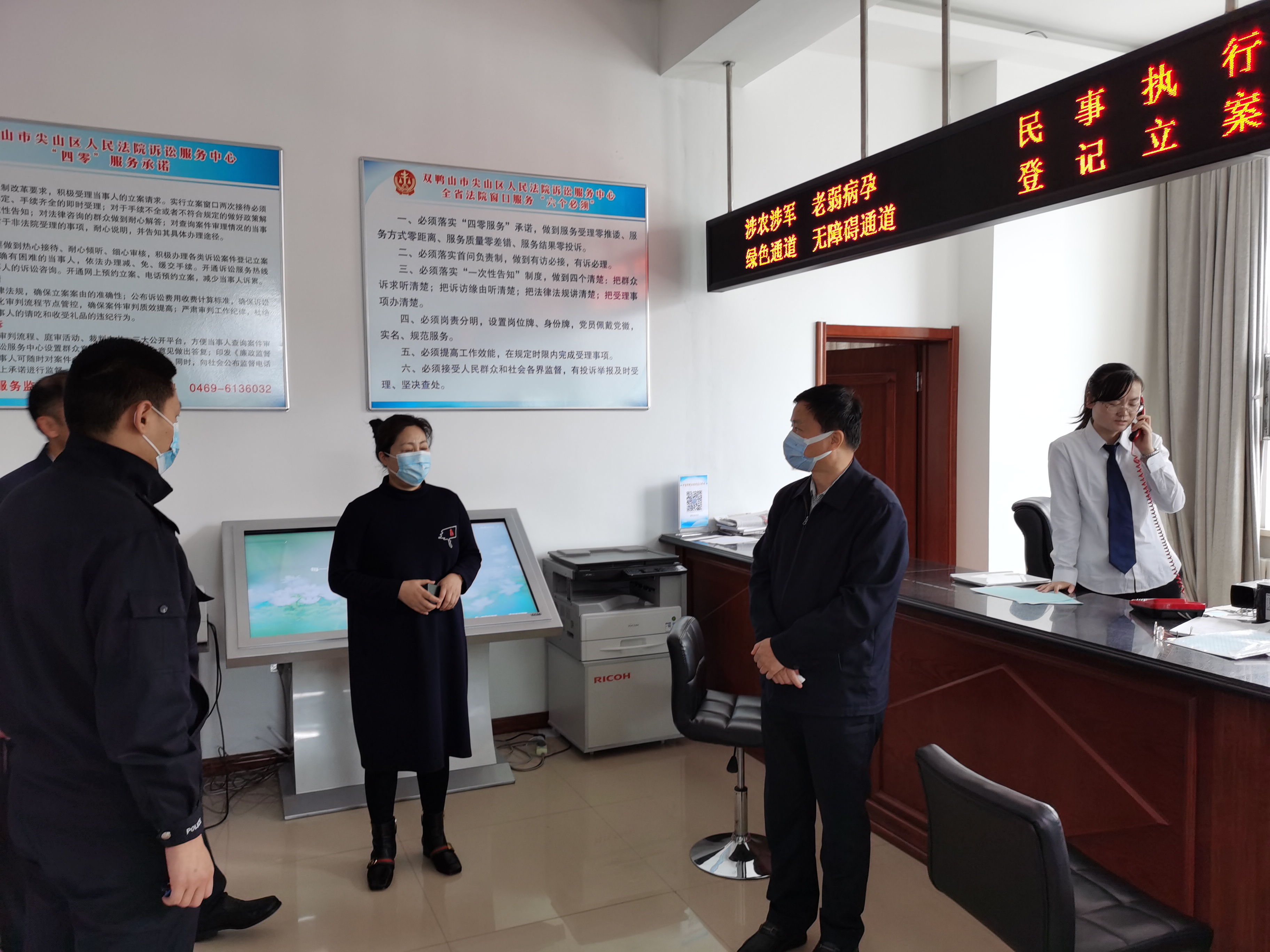 10月10日,双鸭山中院党组书记、院长田守明深入尖山区法院、岭东区法院、四方台区法院调研督导工作。 在三个基层法院,田守明查看了安全检查工作流程、体验诉讼服务过程,详细了解了诉讼服务中心诉调对接工作开展、12368诉讼服务热线接听、疫情防控等情况。强调要坚持严格执法、热情服务,进一步为当事人减轻诉累。