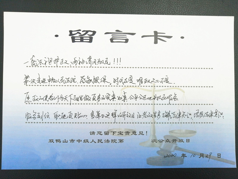 “这些是双鸭山两级法院干警及家属的书画作品,在营造书香法院的同时,也让干警们抒发了自己及家属对法治信仰的精神意蕴”。