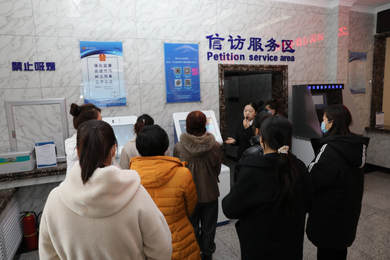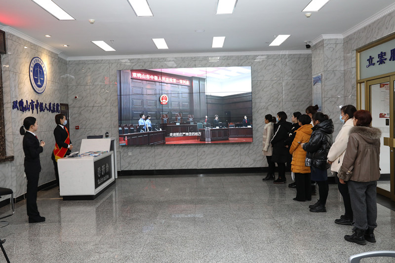 在双鸭山中院干警的引导下,教师们参观了法院诉讼服务中心、科技法庭、图书馆,并参加了双鸭山中院的新闻发布会,零距离感受法院的审判工作、便民服务措施、智能化设施以及法院队伍积极向上的精神面貌和从严管理的工作作风。对法院工作有了更直观的认识,对法官工作有了更充分的了解。