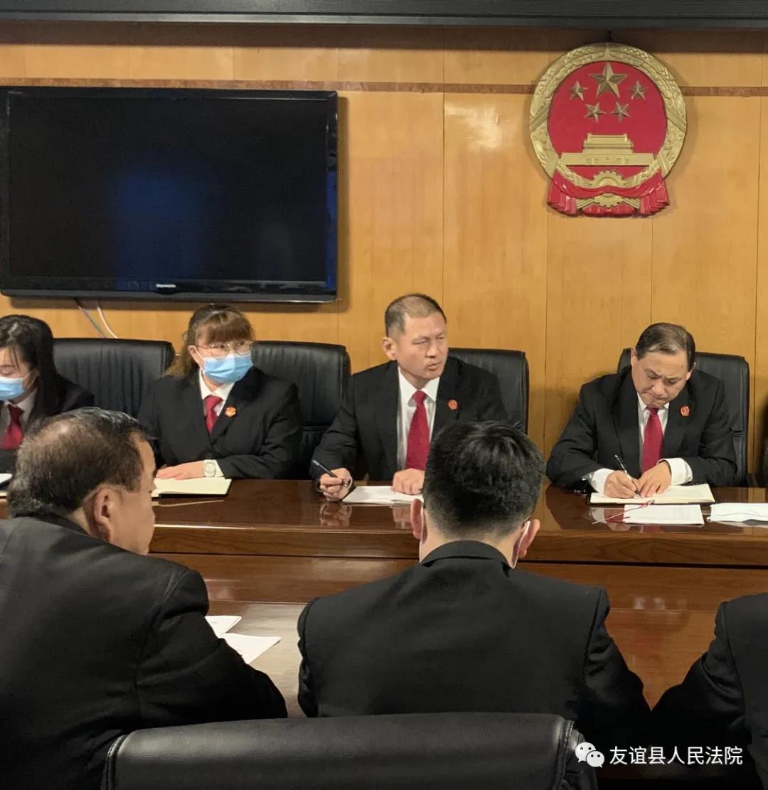 11月17日,友谊法院召开会议,学习党的十九届五中全会精神。会议由副院长孙国峰主持,拟任院长李德福列席会议。