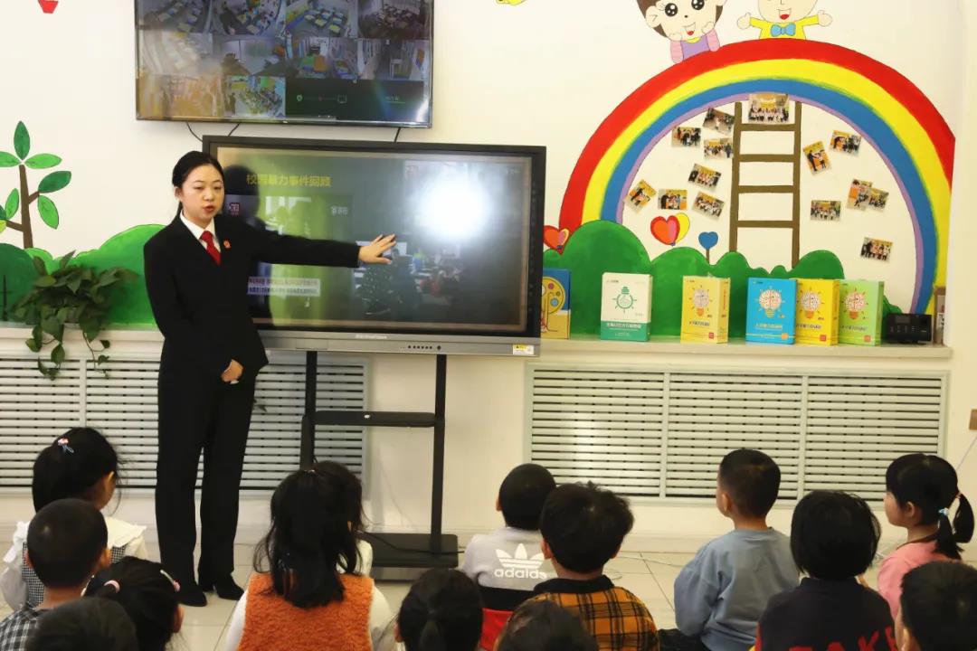 法院干警针对小朋友的心理特点,以小故事和问答互动的形式为孩子们讲解了防范校园暴力和拒绝高空抛物两个主题,第一个主题从何为校园暴力,校园暴力有何危害,同学们应该如何防止和应对校园暴力,以及未成年人保护的相关法律法规等几个方面进行讲解;第二个主题通过生动的图片和贴近生活的例子来讲解高空抛物的危害和处罚措施,让同学们在轻松、愉悦的氛围中了解到了民法典中的小知识,加强了对安全知识的认识,增强自我保护意识。