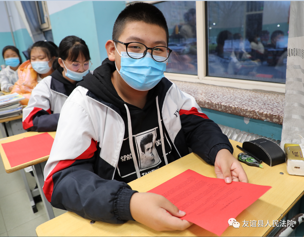 授课结束时,同学们纷纷表示,今天的讲座受益匪浅,授课老师采取以案说法的方式讲解,听起来更加易懂,且记忆犹新,他们深感宪法就在身边,深感民法典与生活息息相关,并表态要不断加强法律知识学习,做一个尊法、学法、守法、用法的好少年。