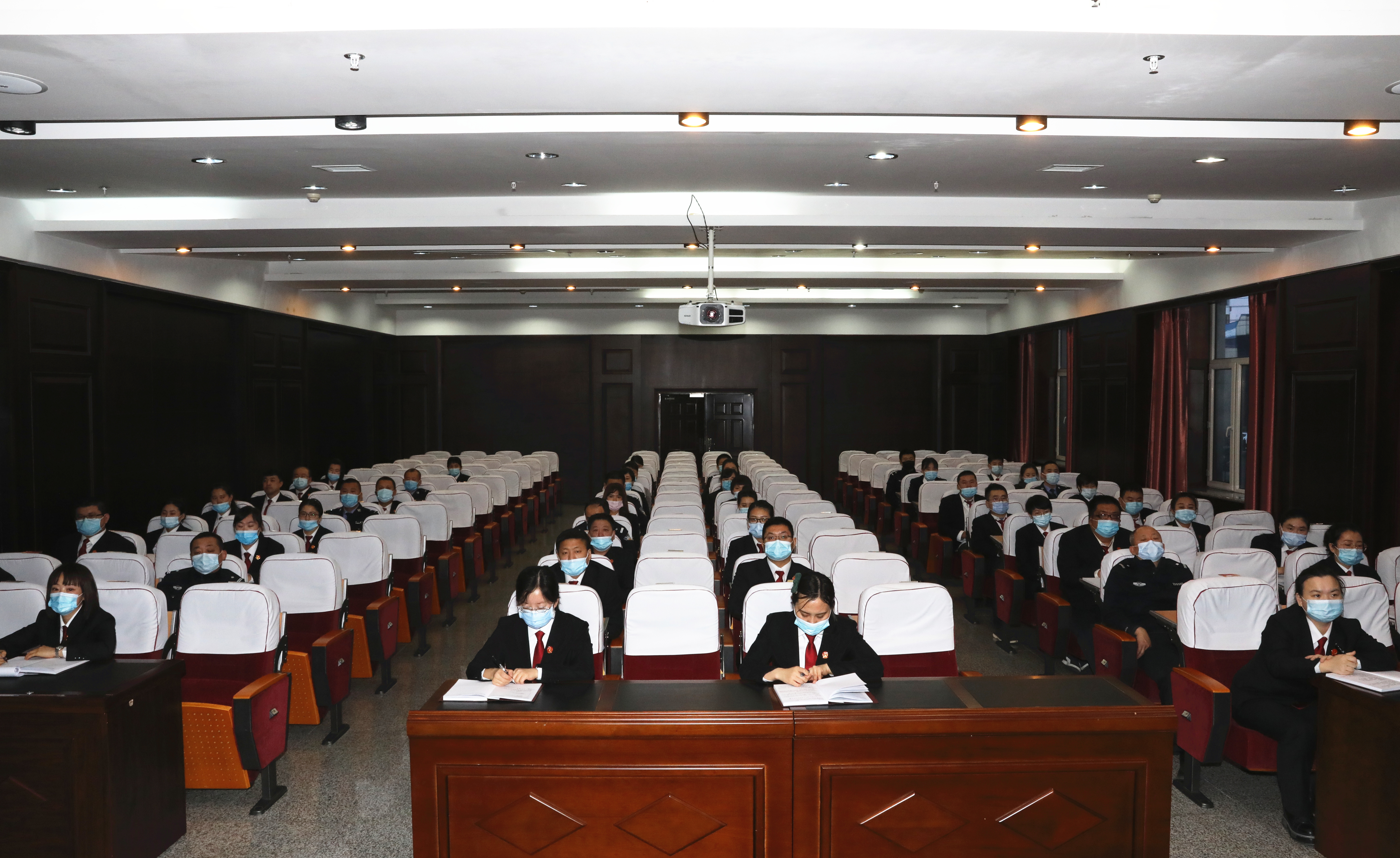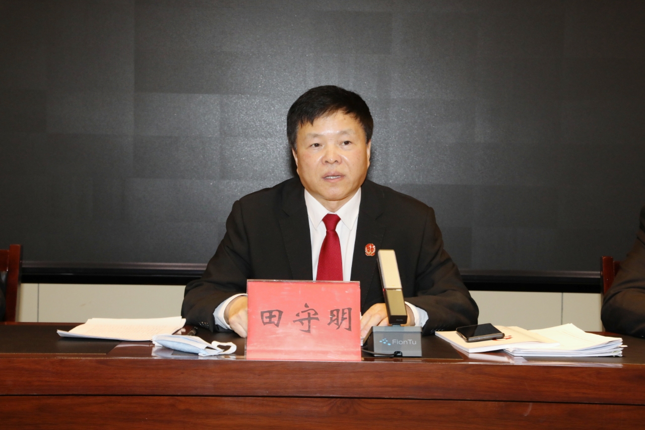田守明紧扣习近平法治思想和习近平总书记在党的十九届五中全会上的重要讲话精神,对习近平法治思想的深刻内涵和习近平总书记在全会上提出的一系列新理念新思想新战略新精神进行解读,并对两级法院工作提出要求。