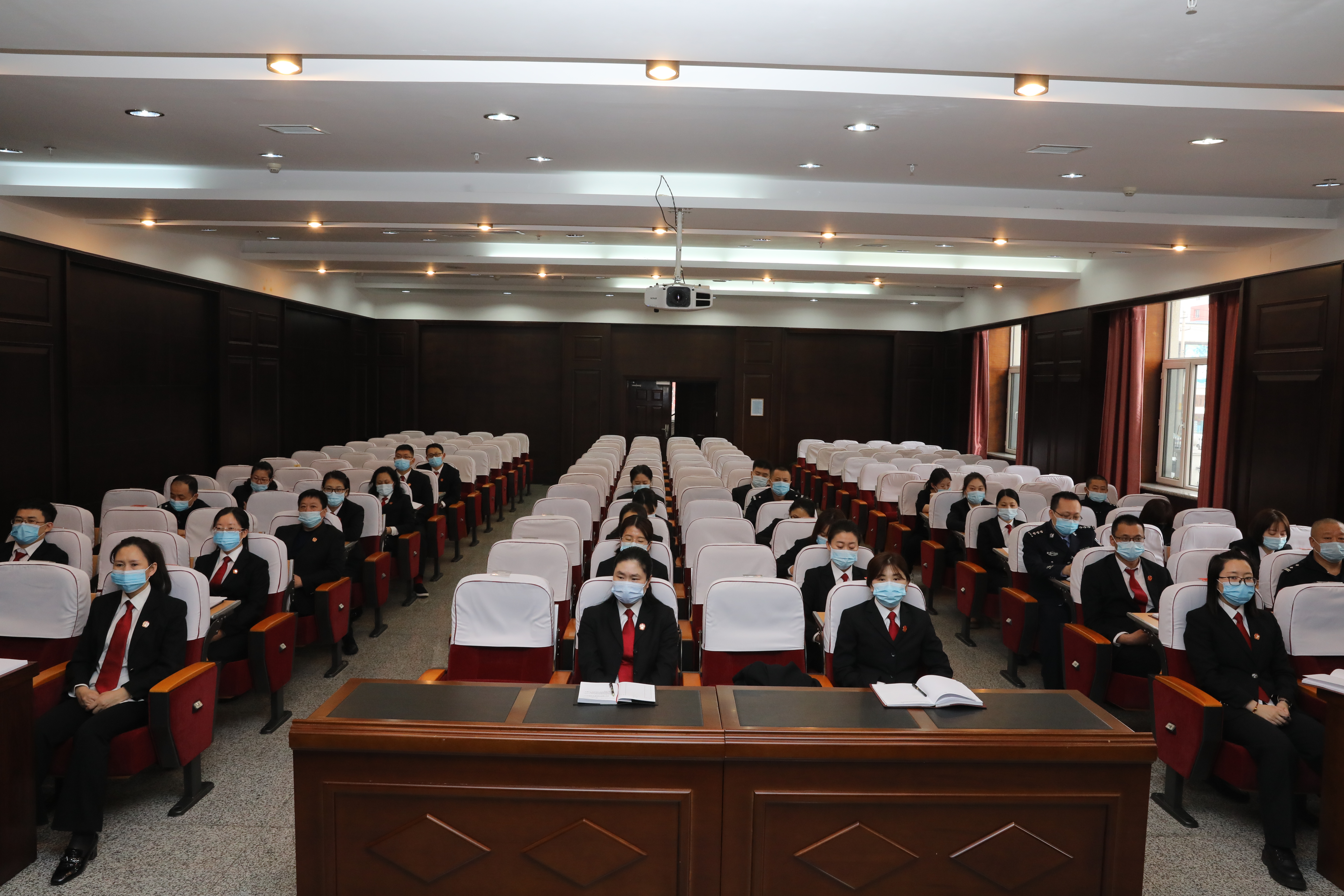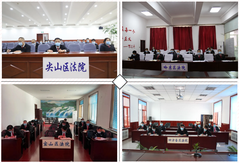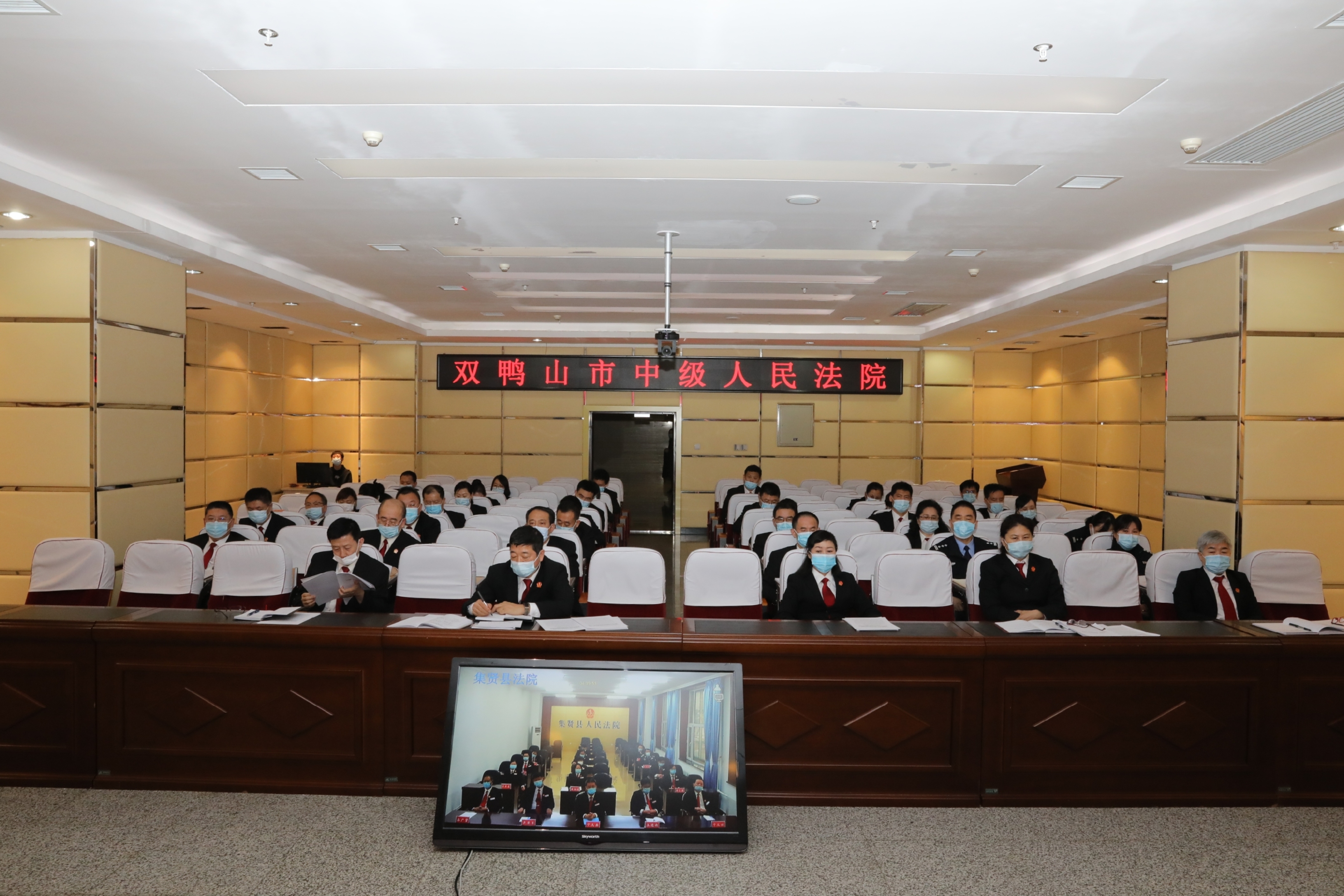 中院全体干警在主会场参加会议,基层法院党组成员、部门副职以上人员在本院分会场参加会议,会议以视频形式召开。