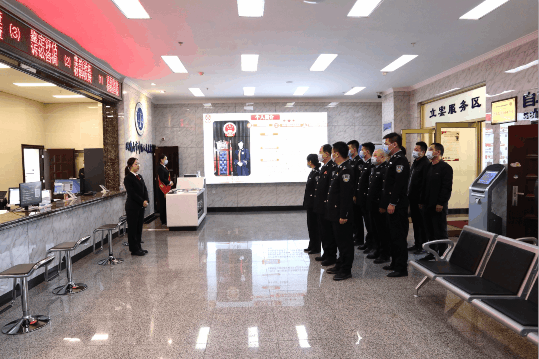 在讲解员的引导下,民警们参观了法院诉讼服务中心、科技法庭、图书馆等办公办案场所,了解了法院便民诉讼服务工作和智慧法院建设。参观后,民警们还参加了双鸭山中院队伍教育整顿新闻发布会。