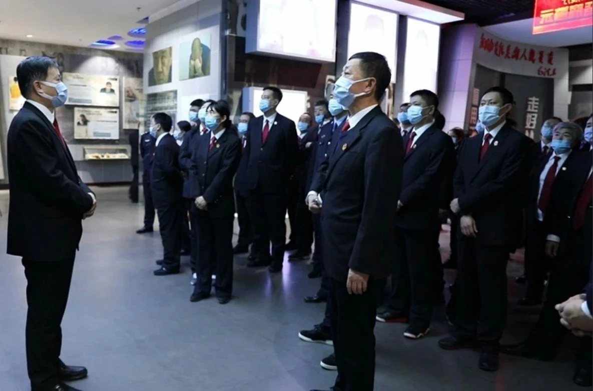 在惩腐警示展厅,田守明院长要求全体干警汲取姜国文、张坚等违纪违法案件教训,引以为戒,要知敬畏、存戒惧、守底线,以党纪国法为准绳,以腐败典型为警钟,以先进模范为榜样,坚持从严自律,从严要求,严格遵守廉洁自律各项规定,自觉抵制不良之风,永葆共产党员的廉洁本色。