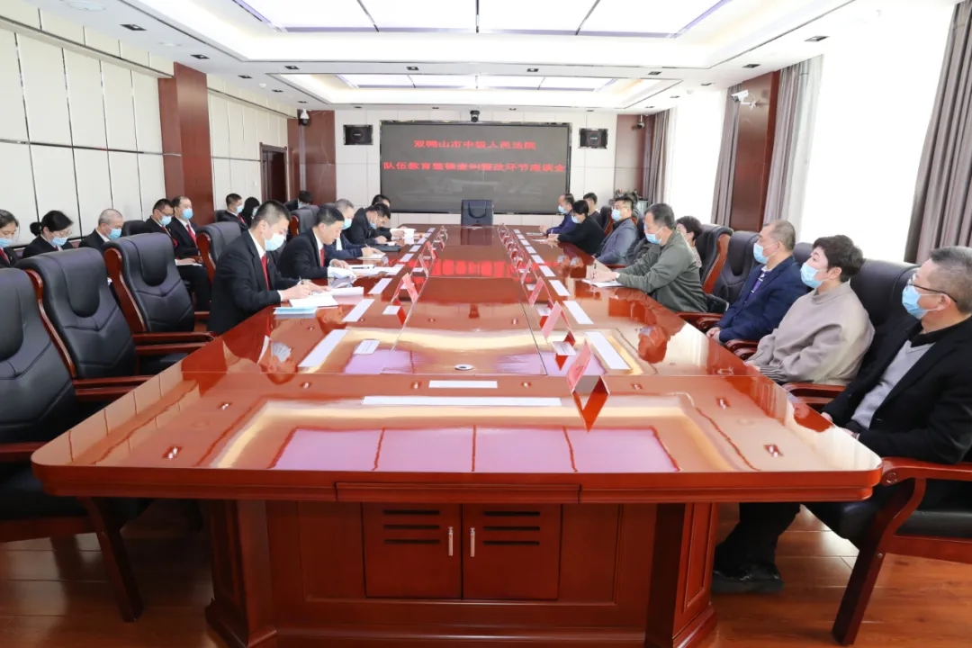4月19日,双鸭山中院召开队伍教育整顿查纠整改环节座谈会,邀请人大代表、政协委员、企业家、当事人、律师代表等参加会议,省政法队伍教育整顿第七指导组法院工作指导小组组长郭宁、成员田力旺到会指导,党组副书记、常务副院长李青春参加会议并讲话。