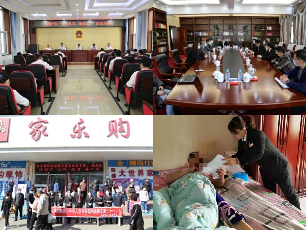 集贤县法院召开会议对从宽从严政策进行宣讲解读;开展“我为群众办实事”实践活动,通过走进乡镇、学校、企业、走上街头等方式,宣传普及法律知识;召开诉源治理人民调解工作会议,推动构建诉源治理人民调解工作大格局;执行局全力攻坚克难,执结一起历时三年的查人查物难的执行案件;执行法官多次往返于重病在床的李某家中,用一个月的时间将执行款送至李某手中,切实为群众解决“急难愁盼”问题。