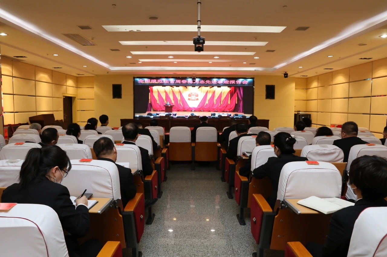 为弘扬英模精神,进一步推进队伍教育整顿走深走实,4月28日下午,双鸭山中院组织干警观看全国模范法官周春梅同志先进事迹报告会。党组书记、院长田守明、党组成员、副处级以上领导、各部门负责人以及干警代表参加会议。