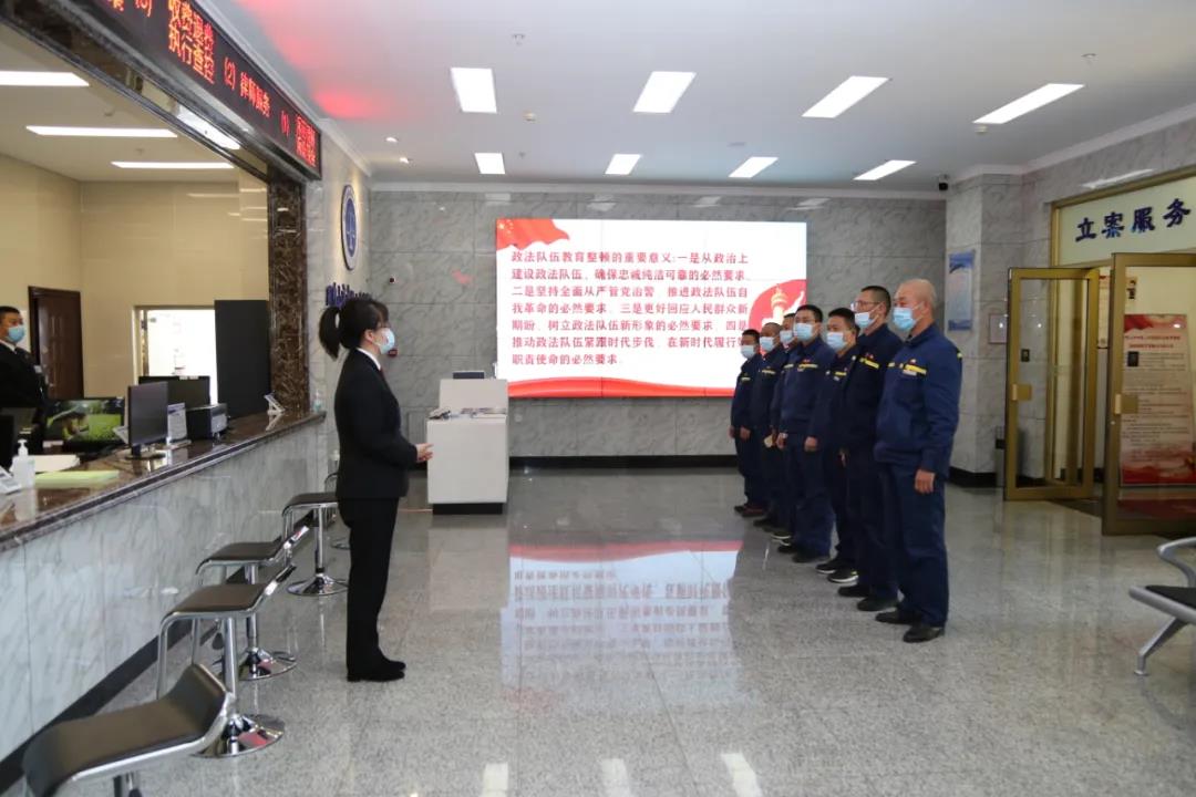为推进司法公开,让群众参与、监督、见证法院扎实开展队伍教育整顿,5月13日,中国石油双鸭山销售分公司福利油库职工走进双鸭山中院,体验网上立案和智能服务终端,了解法院队伍教育整顿工作。