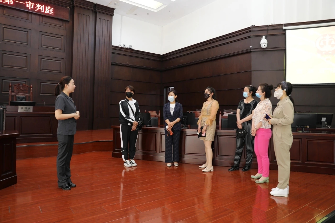 在科技法庭,教师们了解了有关智慧法院建设、审判流程等相关工作情况,走上审判席,感受法庭的威严与肃穆,对法院工作和流程有了更加直观全面的认知。